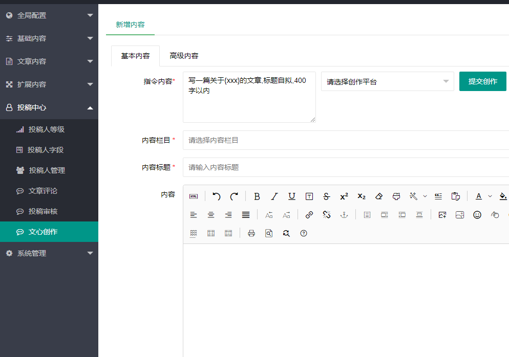 pbootcms后台AI智能创作插件,发挥你的创作思路,只要你提问得好,描述得够清楚,就可以写出好文章,还在怕没有不办法写作文章而烦恼吗?